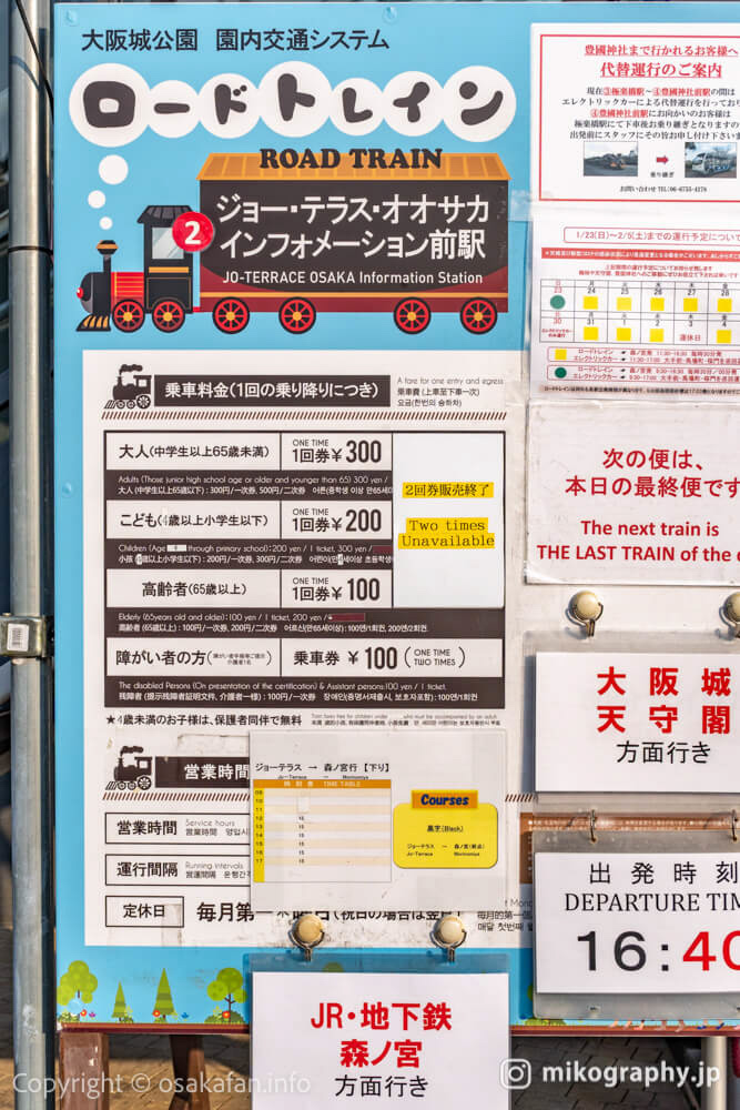 JO-TERRACE OSAKAからつながっているトレインで気軽に大阪城の周りをまわれます